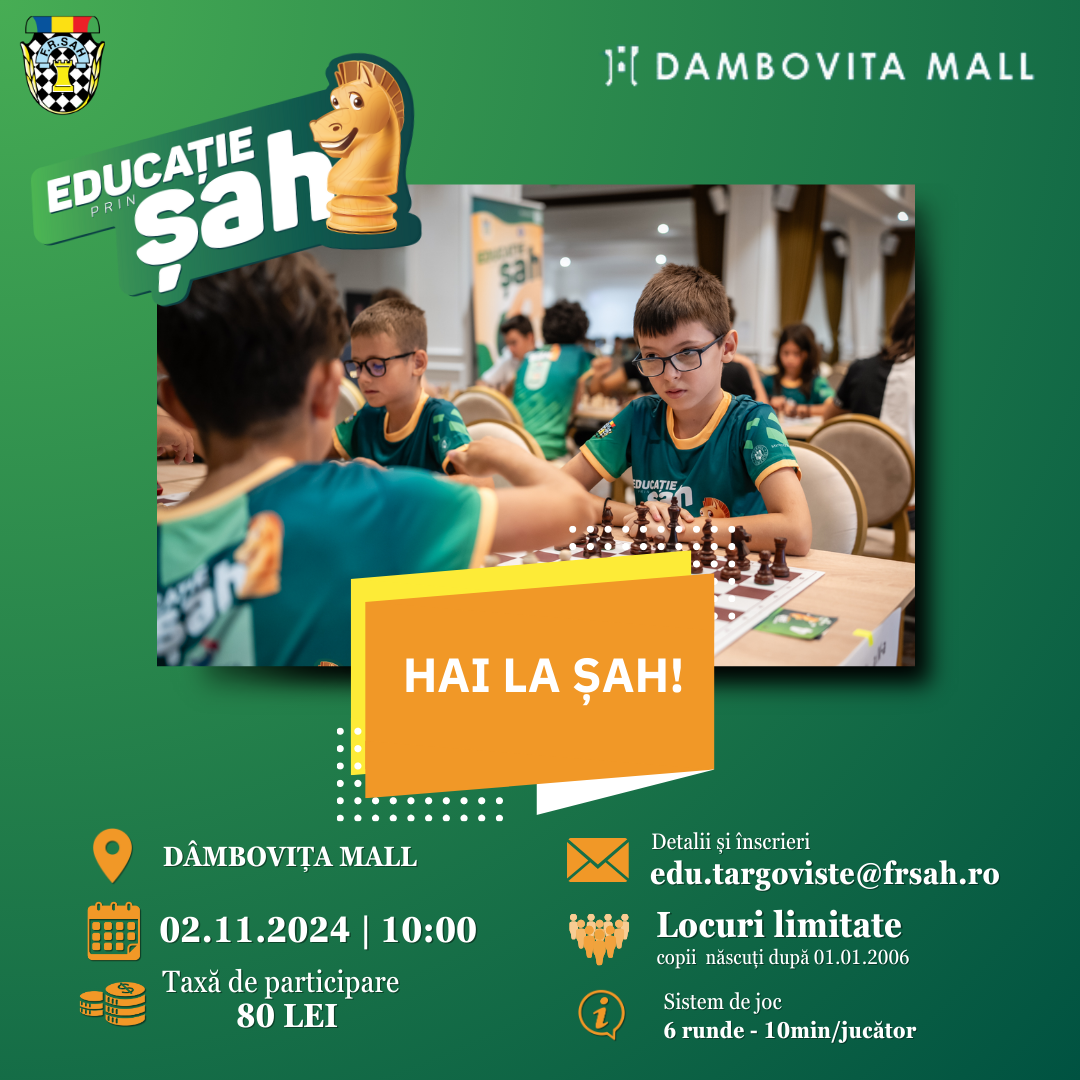 În data de 2 noiembrie ne vedem la Dâmbovița Mall pentru o premieră Educație prin Șah la Târgoviște!