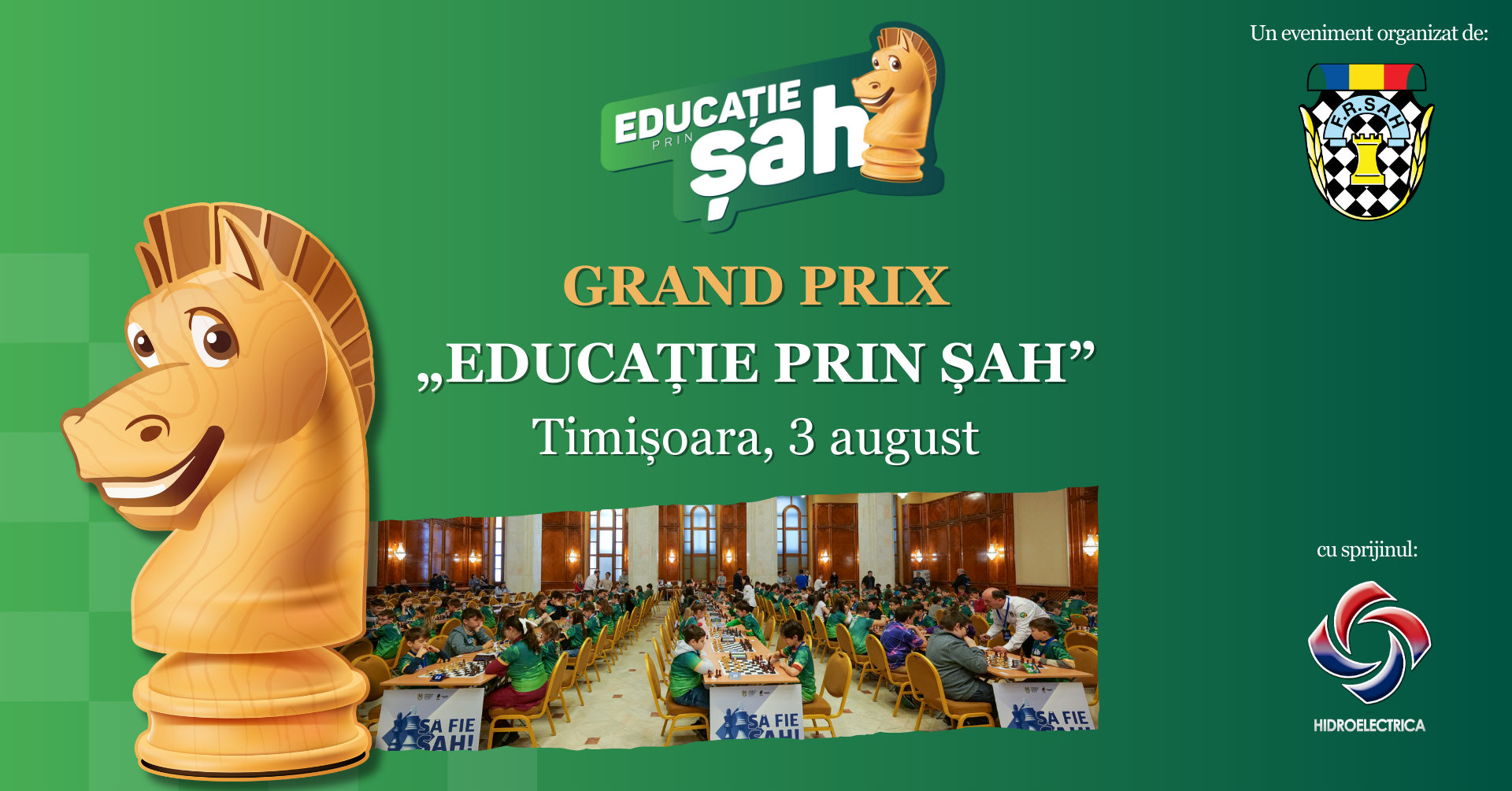 În deschiderea celei de a patra etape a Grand Prix România, vom avea și a patra etapă a circuitului Grand Prix – Educație prin Șah! Așteptăm 500 de copii să joace șah la